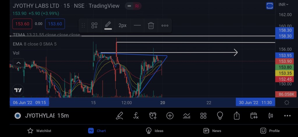Jyothy lab is showing a considerably fare amount in Relative Strength Index (RSI) which is a 55.